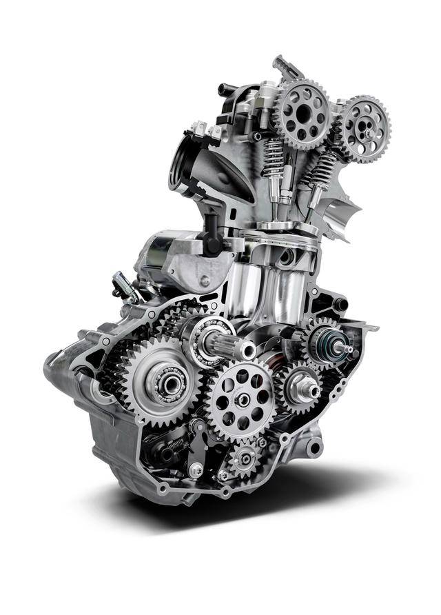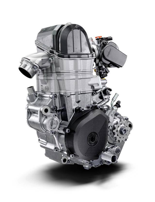 2026 FE 350s 搭载一副水冷四冲程单气缸、DOHC 四气阀,排气量 349.7 cc(缸径、行程为 88 mm x 57.5 mm)的发动机,赛车规格的 FE 350 最大马力输出为 51 匹(MX 赛车规格的 FC 350最大马力输出为 57 匹),可上牌规格的 2026 FE 350s 美国版,峰值马力输出预计会略低于该数字。