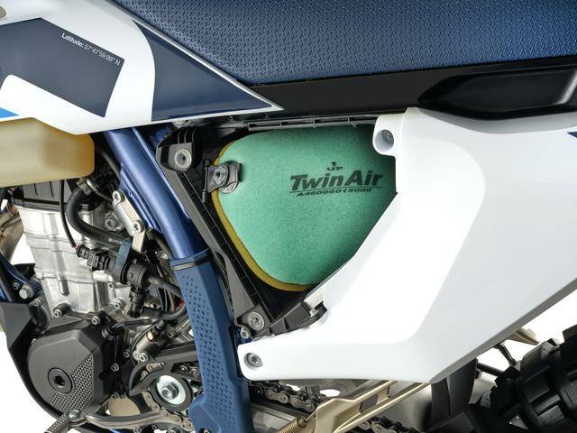 5、为了对应上牌认证规则的需要,两个美国版车型均配备了 LED 的灯光系统、小型的数字式仪表板,后视镜、侧脚架、电门锁、车体两侧的反光牌等基础组件。除燃油外的整备重量分别为 112.8 公斤(FE 350s)、114.8 公斤(FE 501s);