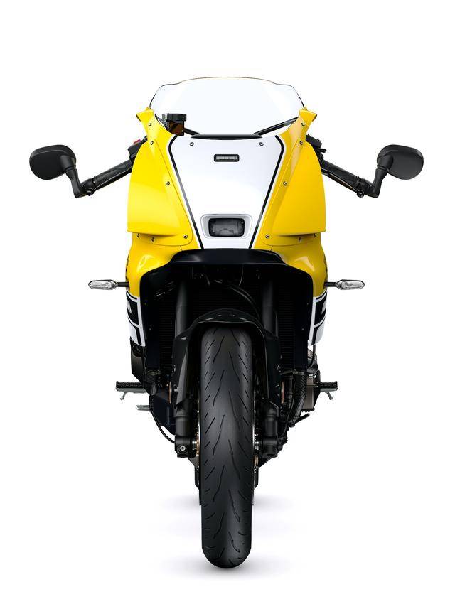 除了贴花之后,黄黑色版本的 2026 XSR900 GP 采用了黑色的车架和后摇臂(红白色版采用银灰色的车架、后摇臂)、黑色的前叉筒(红白色版采用金色的前叉筒)、金色的前后车轮(红白色版采用红色的前后车轮)。
