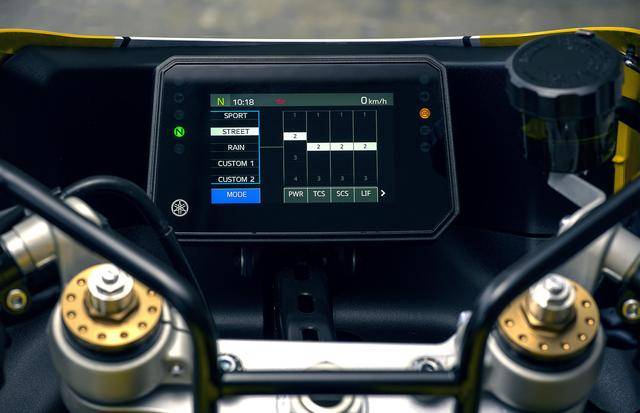电子辅助控制系统方面,配备集成了可选骑行模式、发动机动力输出模式的 YRC(Yamaha Ride Control,Yamaha 骑行控制)驾驶辅助系统,集成了能够向 ECU 发送实时数据的六轴 IMU,从而为 ECU 所控制 TCS 倾斜敏感牵引力控制系统、SCS 滑动控制系统、LIF 前轮起头控制系统和制动控制系统(BC)等子系统提供支持。