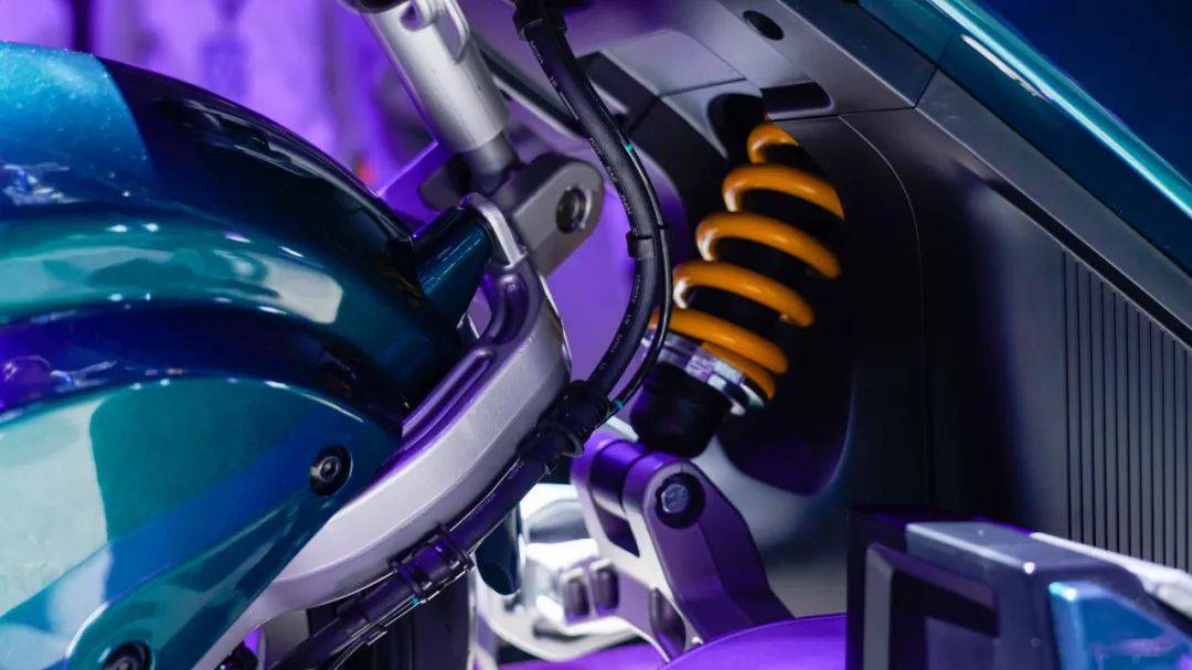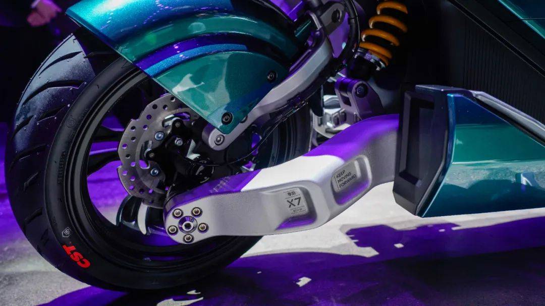 最后是前单摇臂设计,视觉上非常炫酷又很有技术含量,配合中置后减,整车轻量化突出,带来更好的操控性,据部分试驾过的表示滤震效果出色,高速过弯稳定性超越传统电摩。车架也是X7的一大亮点,采用航天级合金钢材,双摇篮式车架,经百万次震动测试,达到高端运动电摩的强度。