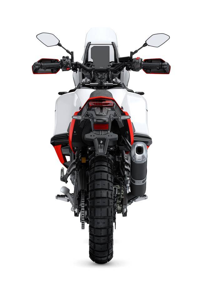 6、油箱的新造型采用了一个有助于改善人体工程学的设计,配合新的、前端经过改进的一体式拉力赛车风格的鞍座,整体设计上、让驾驶员无论是坐着或者是站立的方式骑行,或者是进行前后移动,都可让身体有着更大的活动自由度;
