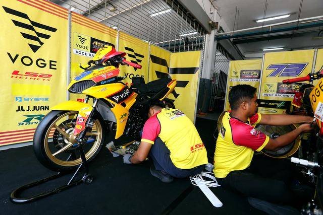 中国制造商 VOGE 无极机车在马来西亚当地的代理商,今年开始、携高性能弯樑车 FR150(Formica Rossa 150),参加 ARRC 里面、以竞争激烈而著称的 UB150 弯樑级别的角逐。车队名为 VOGE AS25 赛车队,两位车手均来自马来西亚:驾驶 73 号车的哈菲鲁丁(Tengku Amirul Haffirudin)以及驾驶 83 号车的苏帕特(Md Afizi Supaat)。无极机车也成为这一级别里面的第三家制造商,而 FR150 的对手,是 YZF-R15 动力平台的 Y15ZR/MX King 150/Sniper 150,以及 CBR150R 动力平台的 RSX150/Supra GTR 150。