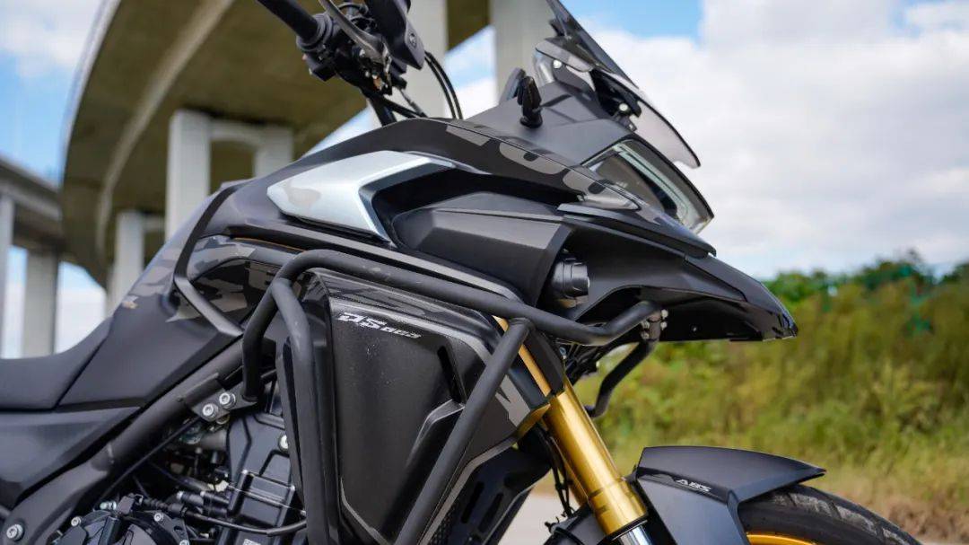 外观设计方面,无极DS625X与自家DS525X保持相同风格,但又与之不同,相同的是大灯组的设计棱角分明且凹凸造型,造型、质感都是这个级别的一流水准,颜值没得说,同时大灯组下方加入了一组雾灯的设计,在保证了照明角度的有同时,也免去了后期改装的麻烦,且油箱两侧护板更显宽大,带来的效果很明显,风阻保护为出色,更贴合旅行。