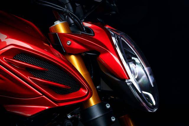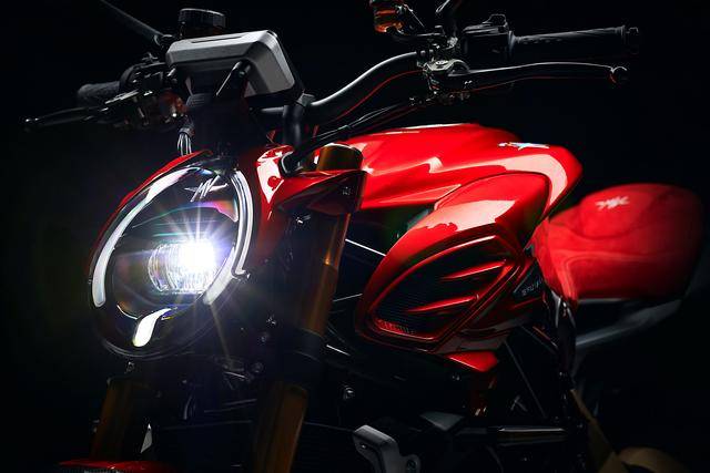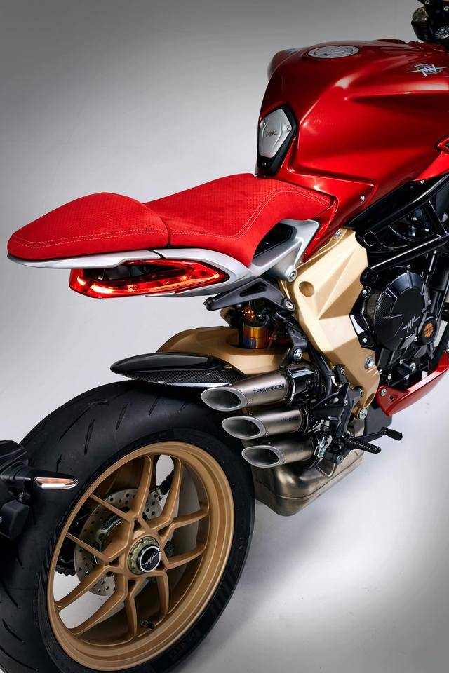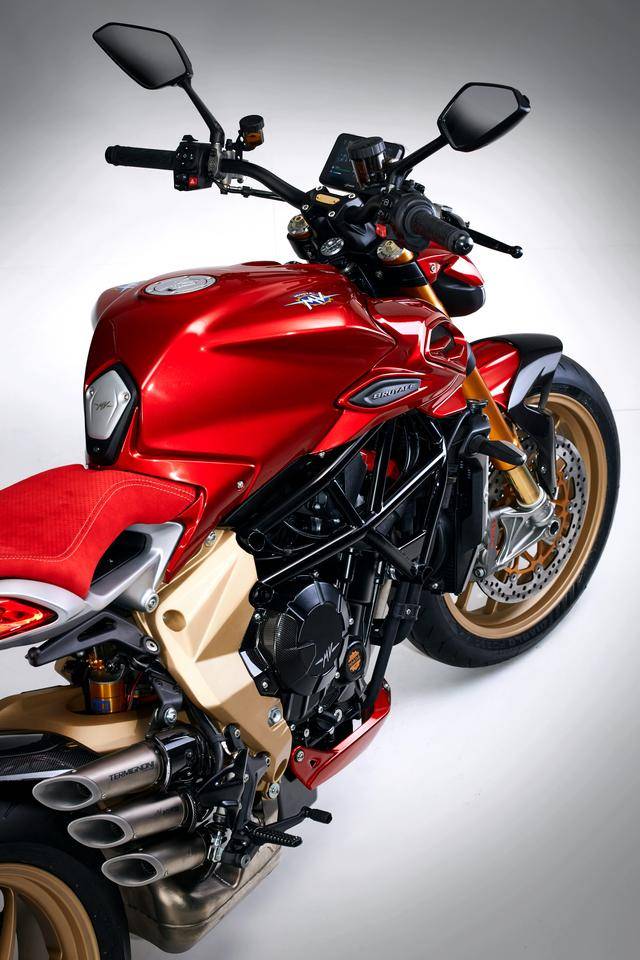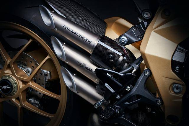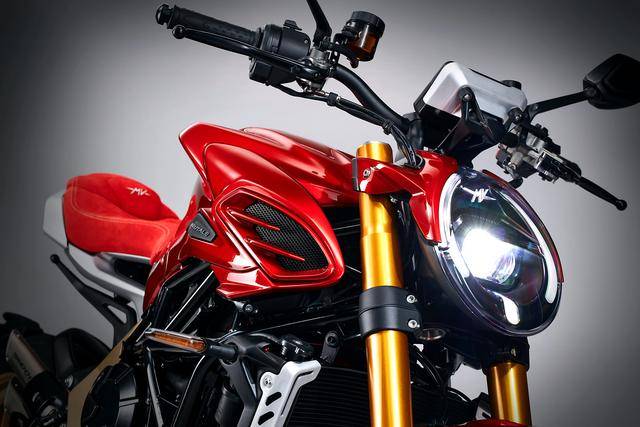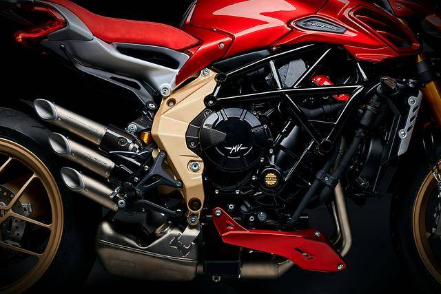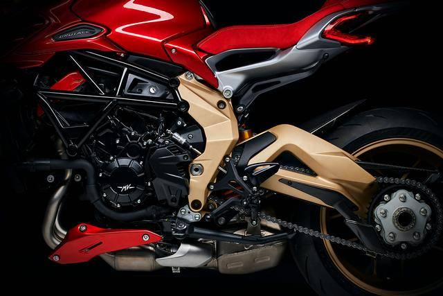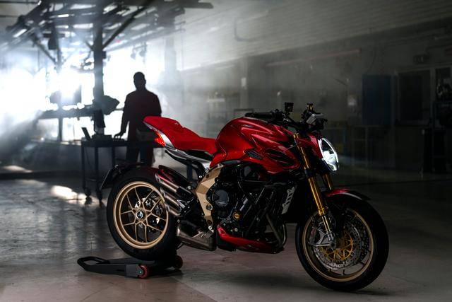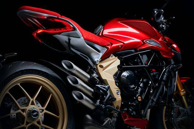 在 MV 奥古斯塔的产品线里,搭载三气缸发动机、属于中量级的 Brutale,首个车型是 2011 年首次公开的 Brutale 675;次年就发布了同样搭载直列三气缸、排气量扩大至 798 cc 发动机的 Brutale 800。目前在售的中量级 Brutale 系列,有 798 cc 低功率/高功率、801 cc 三个动力规格,型号则只剩下 Brutale(Brutale R、Brutale RR、Brutale RR Ottantesimo 八十周年纪念版)、不再有机器排气量的标识。