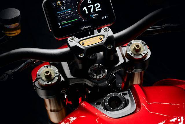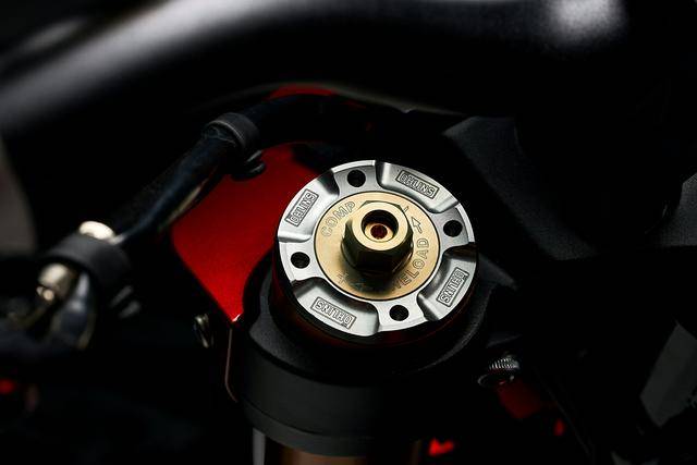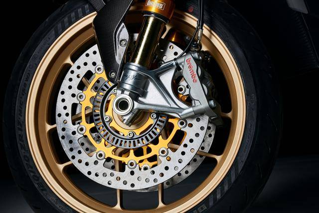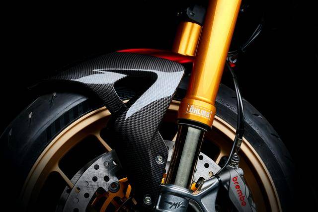 5、标配了高规格的 Ohlins 奥林斯悬挂系统,前面是叉芯口径为 43 mm、行程为 120 mm 的 NIX 30 倒立式前叉,后面是行程为 133 mm 的 TTX GP 36 减震;制动系统采用了 Brembo 布雷博的配套,前面是双 320 mm 刹车碟 + Hypure 刹车卡钳,后面是 220 mm 单刹车碟;厂方称,新车的全身配置,将尖端技术与情感表现融为了一体;