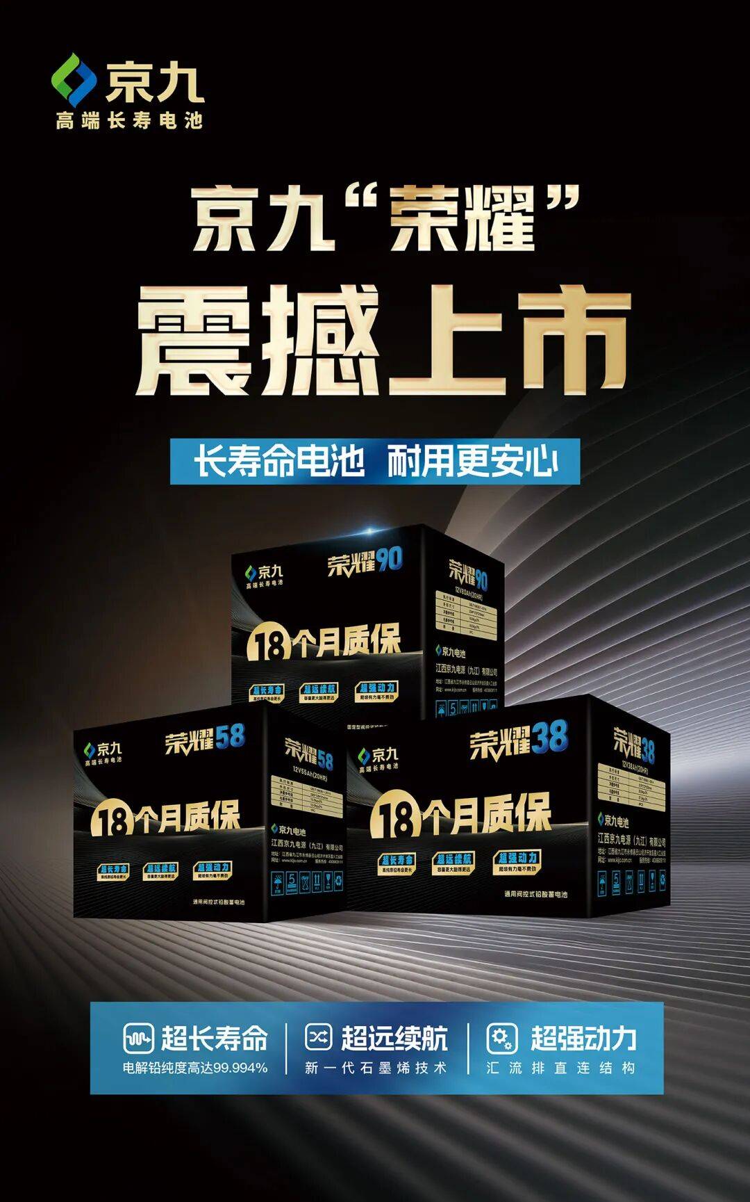为什么说京九电池是市场“高端长寿”电池的代表品牌?从质保18个月的“荣耀”系列上就足见其扎实的产品底蕴与技术实力。
