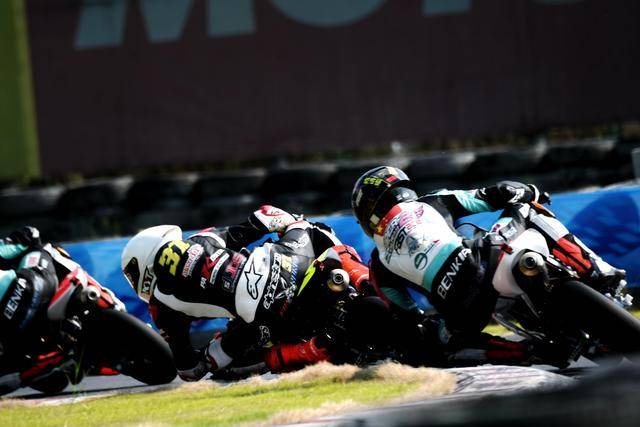 第二节比赛称得上是一场经典的角逐,16 圈的比赛、三位小车手从比赛发车到最后冲线,全程都紧紧地前轮贴着后轮般、在每一个弯道进行着争夺;三人的积分都相近,这场 2025 赛季的最后一节比赛、将决定两席出线名额的最终名单,让这个 FIM MiniGP 里面最高级别的争夺、犹如一场龙争虎斗。