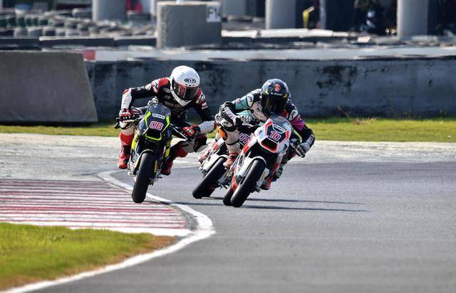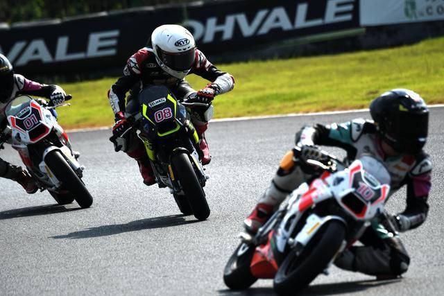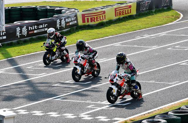 有着全球总决赛参赛名额的 FIM MiniGP 190 组(以下简称 190 组),今年的焦点是陈诗瑜、黄品纮与龙俊豪,三位小车手争夺两个出线席位的较量。赛前的排位,三位车手的最佳圈速都在 56 秒区间内,陈诗瑜拿到了排头位发车,龙俊豪、黄品纮分别排在第二、第三位起跑。