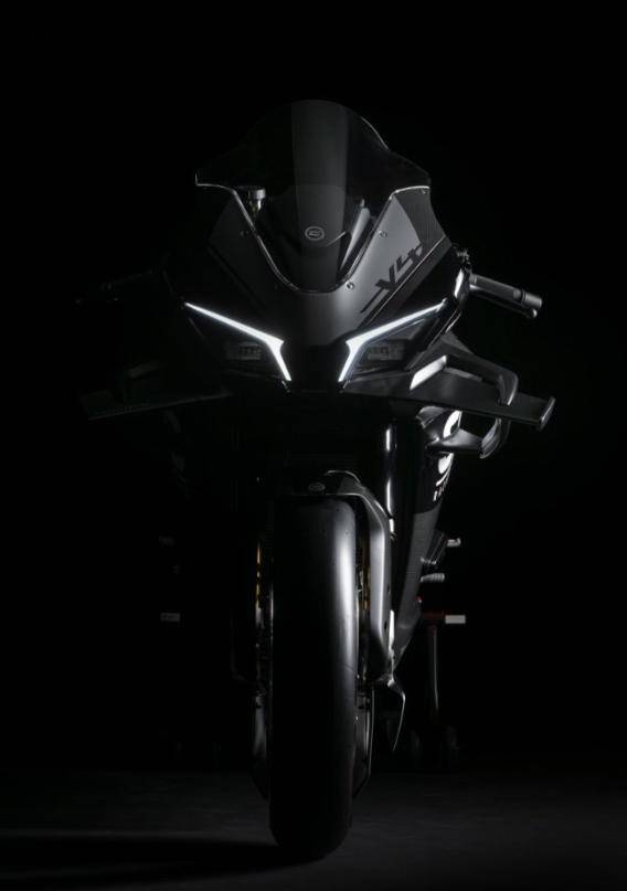 V4 SR-RR原型车最核心的技术突破在于搭载了一套“动风翼系统”。该系统能够根据实时骑行状态自动调整翼片角度:在直线加速阶段,可有效降低12%的风阻,助力车辆极速突破300km/h;同时,该系统能为前轮提供高达45%的下压力,显著提升高速稳定性并抑制翘头风险。在过弯与制动工况下,系统还可启动单侧翼片独立工作或开启空气刹车模式,分别增强弯道稳定性与提供额外的制动效应,进一步保障骑行安全。