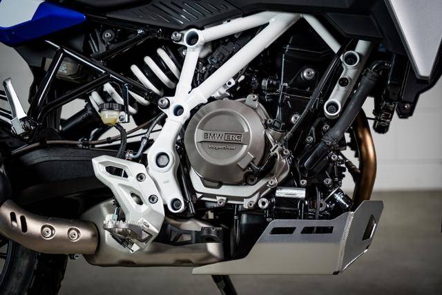 尽管被命名为F 450 GS,这款车实际搭载的是一台420mL并列双缸发动机。这台发动机由宝马与印度TVS联合开发,采用了一系列创新设计,比如135度曲轴偏移。发动机在8750转时输出48马力的最大功率,在6750转时提供43N·m的最大扭矩,这一设定专门考虑了欧洲A2驾照的马力限制。