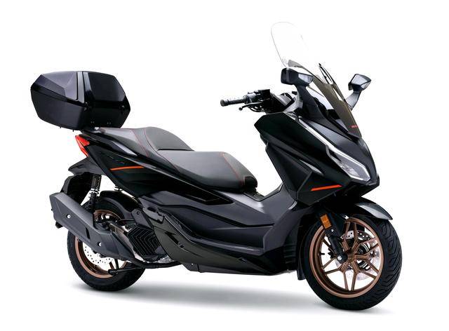 同时推出了 2026 Forza 125 特别版,规格上与标准款相同,但采用了红色缝线的鞍座、黄铜色的前后车轮(标准款采用黑色的车轮),并有一个名为 Pearl Nightstar Black“ 珍珠夜星黑色 ”、带红色线条的专属车身图案/贴花。