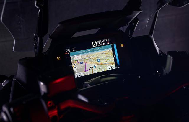 车体方面,采用了一副铝合金制的车架,行程为 120 mm 的倒立式前叉、行程为 117 mm 的摇臂 + 单筒式后减震,前双碟、后单碟的制动系统,2025 款上才出现的 7 英寸 TFT 全彩色数字式仪表板,智能钥匙、可调的前风挡、可调的驾驶员靠背,直径为 15 英寸的前后车轮等。