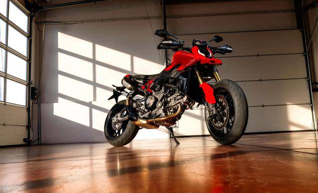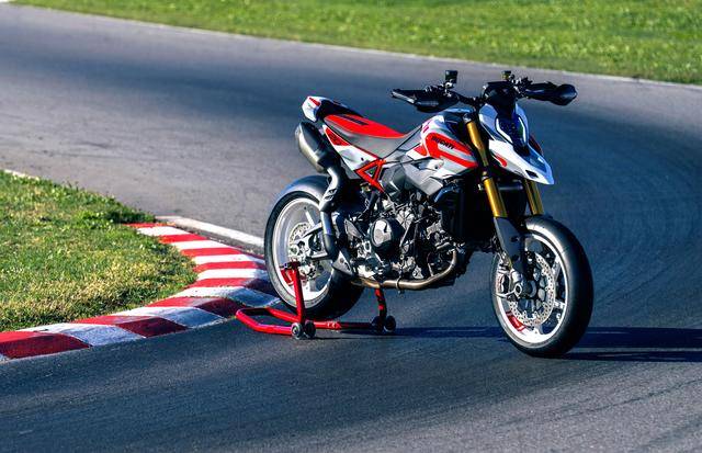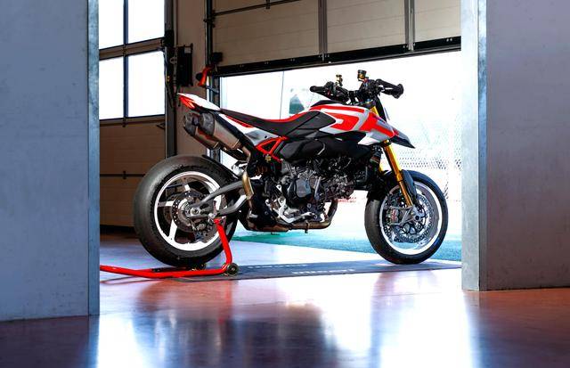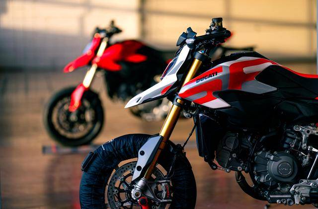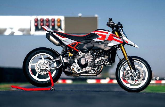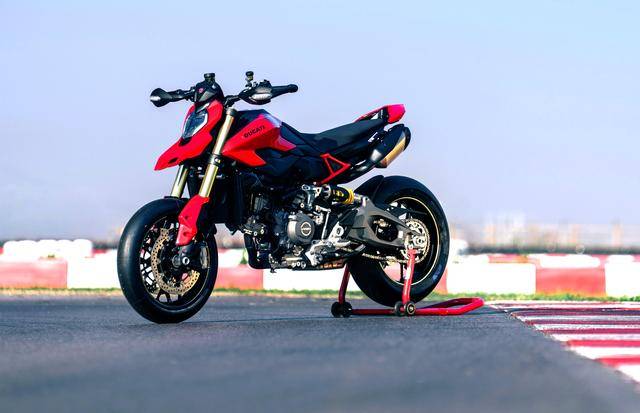 其他方面,包括了 5 英寸的 TFT 数字式仪表板,880 mm 的标准鞍座高度(可选装 865 mm 低座高鞍座,而现行的 Hypermotrad 950 为 870 mm),更长的 1514 mm 标准轴距(Hypermotard 950 为 1493 mm),容量为 12.5 公升、全新设计的油箱(950 的油箱容量为 14.5 公升),不含燃料之下的全车整备重量分别为 180 公斤(标准款。现行的 950 标准款为 193 公斤)、177 公斤(SP 版。现行的 950 SP 版为 191 公斤)。