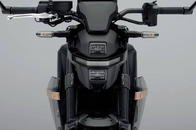 6、人体工程学方面,考虑到要适合初学者到有经验者都可驾驭的易用性,车辆的鞍座高度设定为 800 mm,但鞍座与车体中部的宽度仅有 260 mm,这让驾驶员的双脚更容易到达地面;转向角设定为 35 度,转弯半径为 2.8 米(与 CB500 Hornet 相当);采用一个直立、放松的骑行姿势设定,这使得 WN7 适合在繁忙的城市街道上骑行;