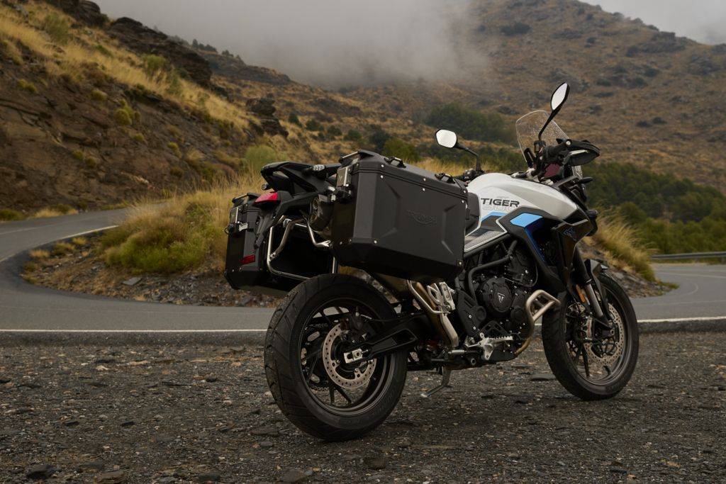 Tiger 900:Akrapovič 排气、双版本悬挂差异明确Tiger 900 Alpine Edition 以公路导向的 GT Pro 为基础开发,外观采用双色涂装,并以 Aegean Blue 点缀细节,带出冷冽高原的视觉意象。