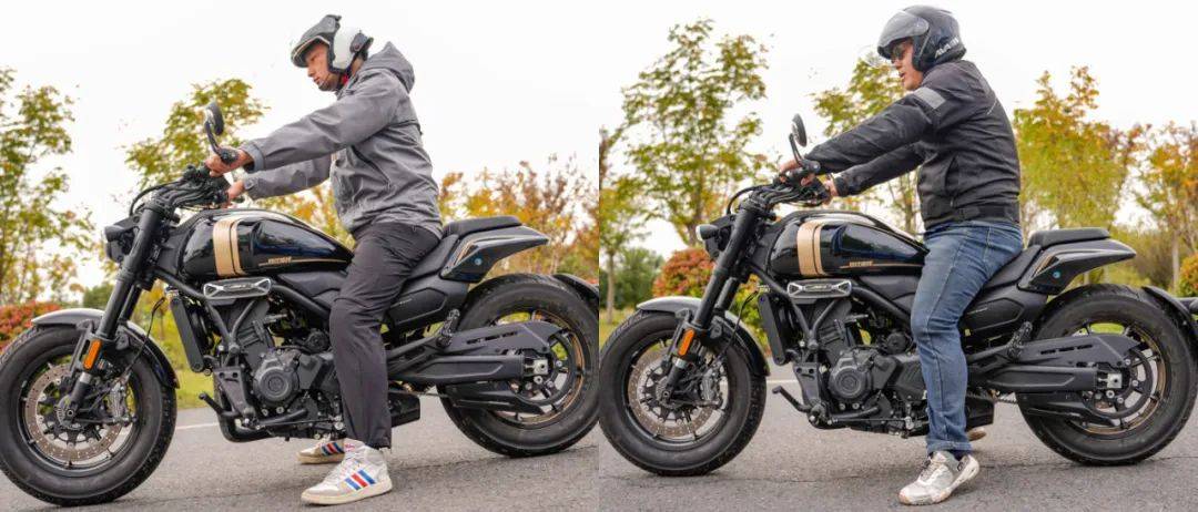 AK628原厂720mm的低坐高,以我178身高实际乘坐时,全脚掌着地的同时腿部还有一定弯曲,172身高微抬脚后跟,所以基本上165cm左右的骑士都能骑,毫无压力,同时192kg的整备质量在挪车扶车时同样体感不算重。