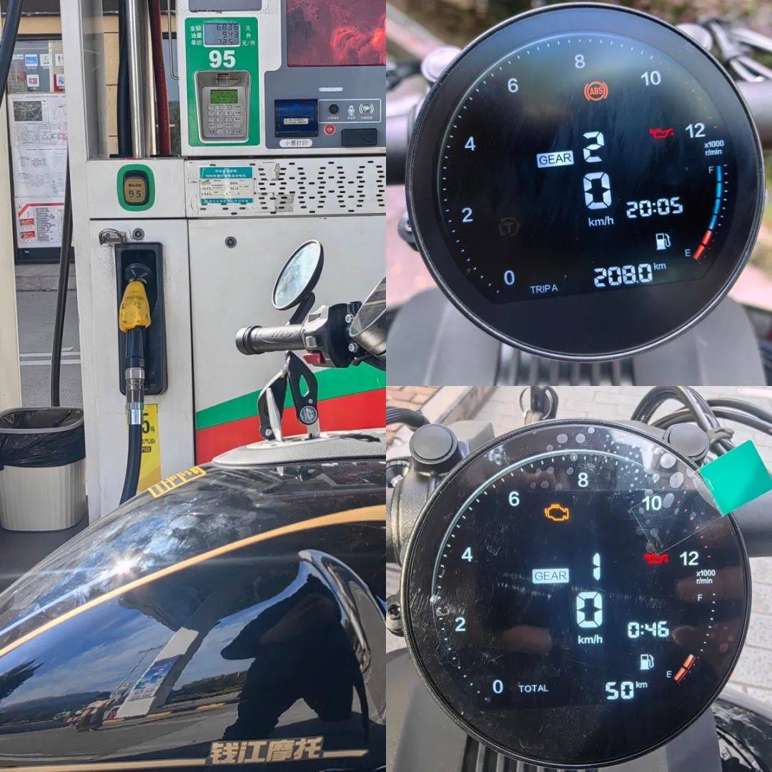 经过性能测试,高速行驶,弯道以及非铺装驾驶多个使用场景下来,累计行驶里程158km,重新加满油,共消耗9.43L汽油,暴力测评油耗为5.9 L/100km,日常正常驾驶油耗应该在4.5-5.5之间(中大排车型不同驾驶方式对油耗影响很大)。原厂17.5L的油箱容积,正常摩旅续航约在300公里出头,够用。
