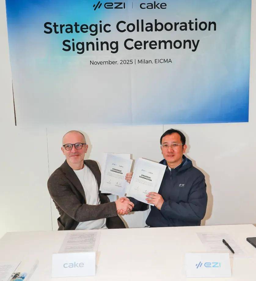 近日,EZI携旗下18款覆盖二轮、三轮及四轮轻型电动全场景、全品类旗舰矩阵,强势亮剑2025年米兰国际摩托车展(EICMA),更在现场与北欧知名电动车品牌CAKE达成联合产品研发合作,推动自身全球化生态布局迈入规模化协同新阶段。