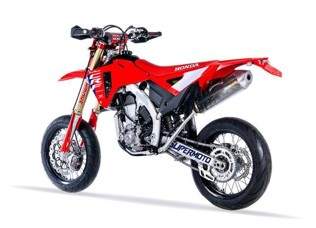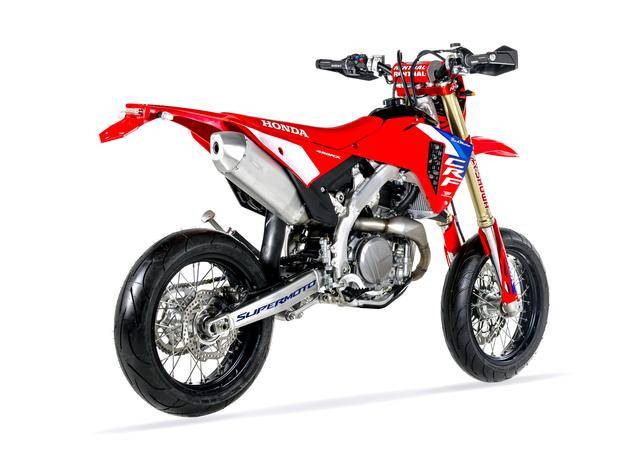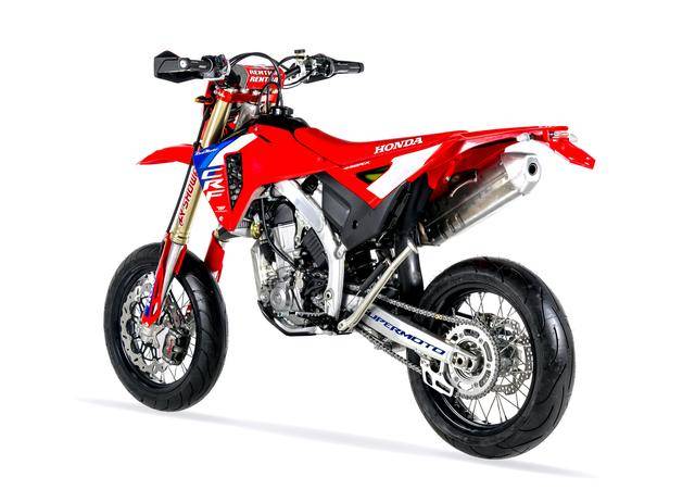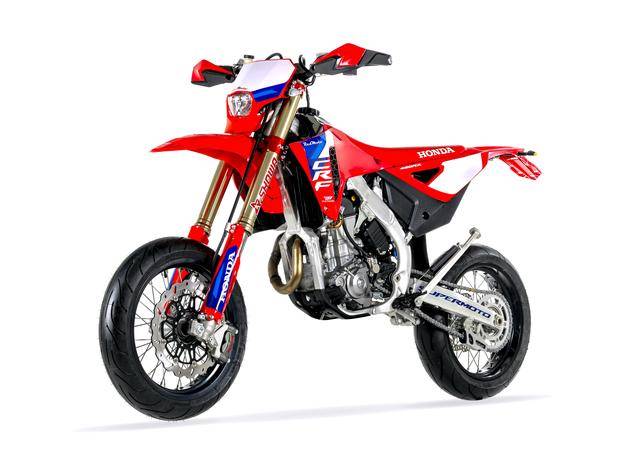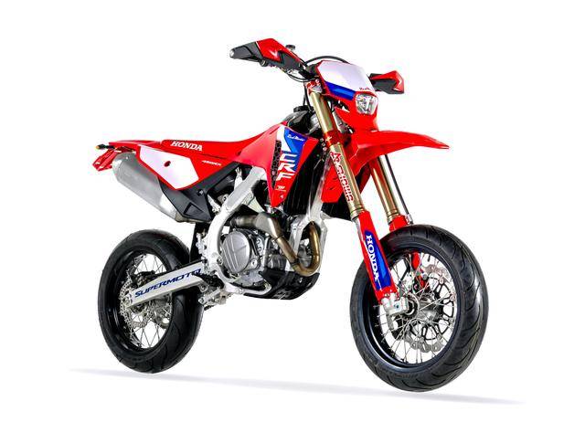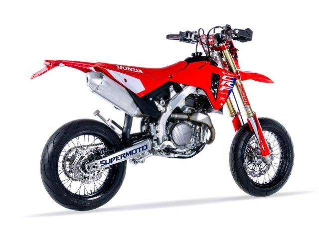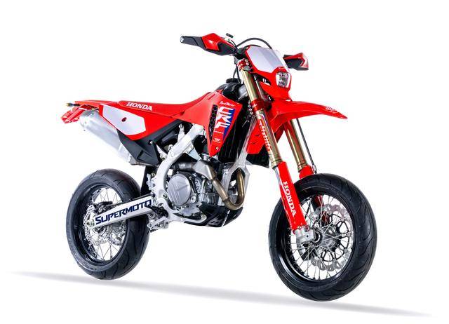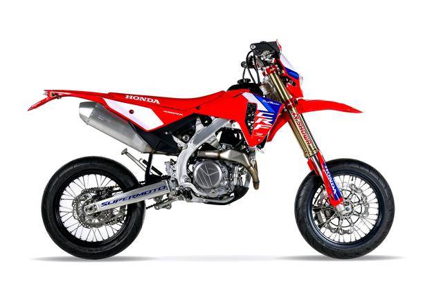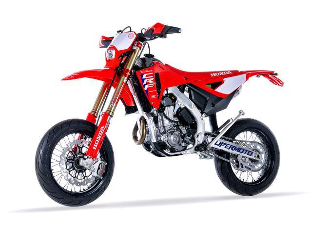 下面的图片,现行的 2025 款 CRF 450RX Supermoto(资料图片)。