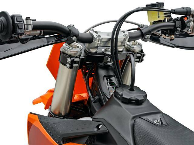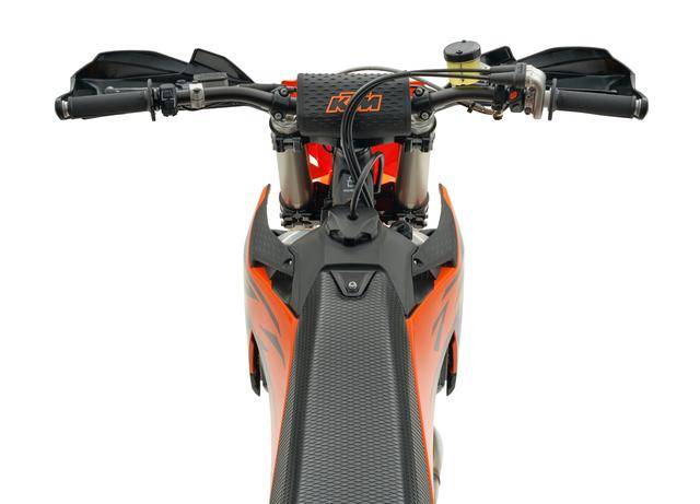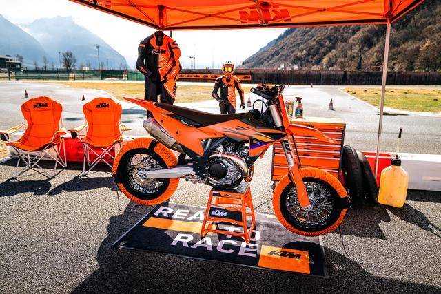 与现行的 2025 款相比,2026 款 450 SMR 电喷系统内的 ECU 数据包和空气滤清器经过修改,换装了更长的消声器,让新车符合 FIM 在今年开始全面执行的最新噪音规定(赛前测定的目标限定值 109 分贝、赛后 111 分贝,赛前测定的允许误差值为正负 2 分贝、赛后为 1 分贝。而此前是赛前测定的目标限定值为 112 分贝,允许的误差值为正负 2 分贝);其他细节方面,散热水箱的外壳经过修改,空气滤清器外壳采用了新的、可以快速拆卸的设计,油路加装了具有更好防护功能的新绝缘帽,此外还有一个新的车身图案/贴花。