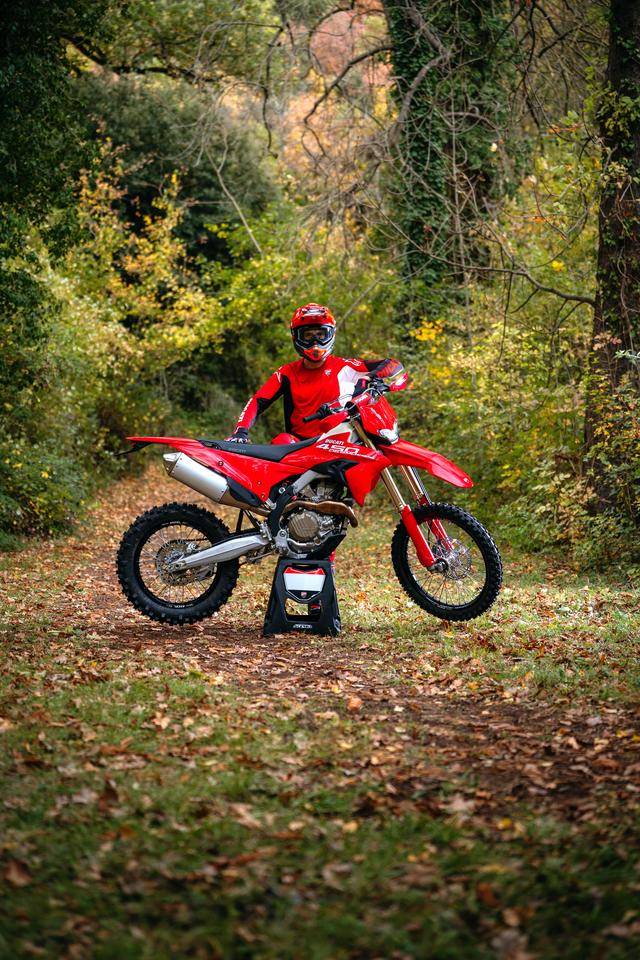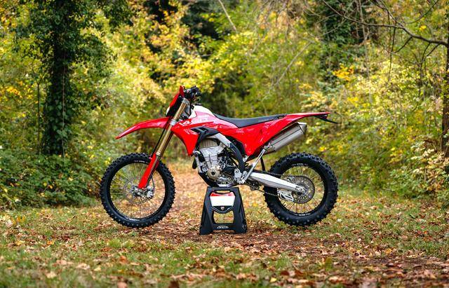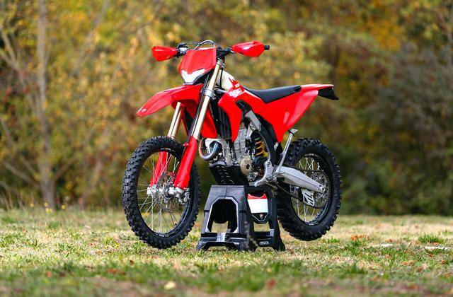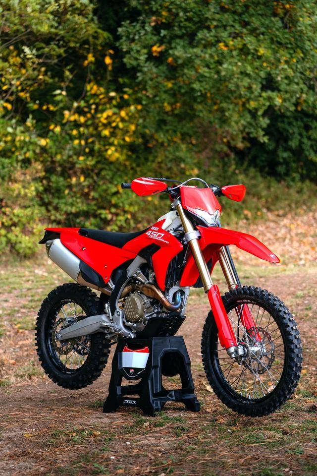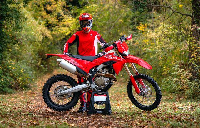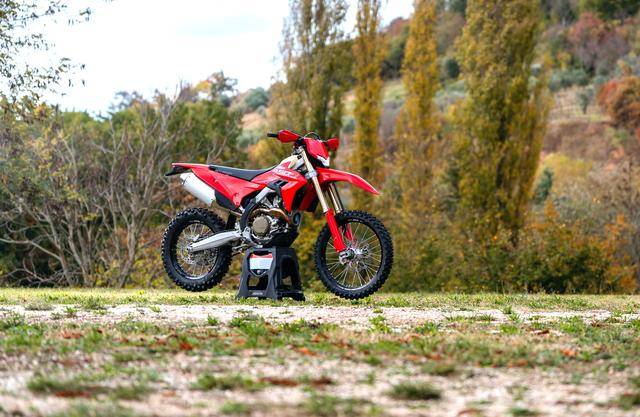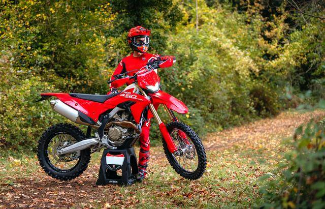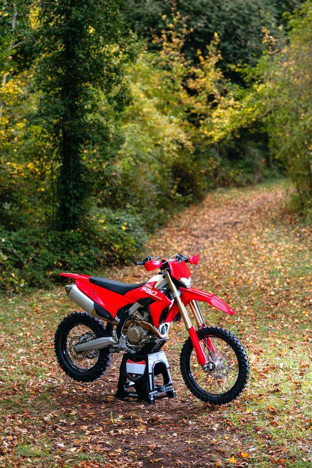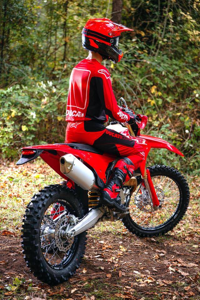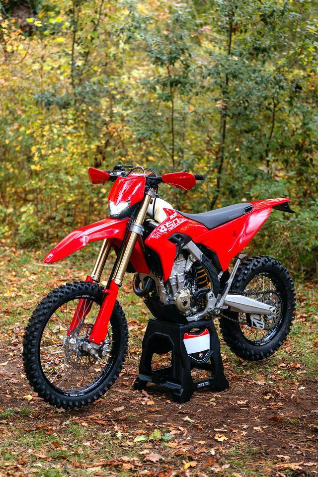 杜卡迪在今年四月正式发布了属于 MX(Motocross,场地越野)规格的全新市售越野赛车 Desmo450 MX,这是杜卡迪历史上的第一款市售越野赛车。市售规格的 Desmo450 MX 搭载一副水冷四冲程单气缸、DOHC 四气阀、Desmodromic 气阀正时控制(轴控制气阀,而常见的气阀开合控制组件是弹簧)的发动机,缸径、行程为 96 mm x 62.1 mm,排气量 449.6 cc,峰值动力输出 46.7 kw(约 63.5 匹)/9400 rpm,最大扭矩输出 53.5 N.m/7500 rpm。