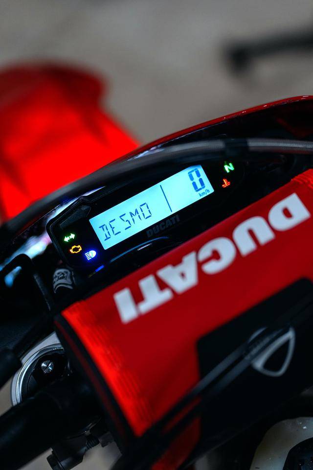电子辅助控制系统方面,Desmo450 MX 配备了两种可选的骑行模式、两个可选的动力模式,四种不同级别介入程度可调的 DTC 牵引力控制系统,启动控制,发动机制动控制,快速换档系统。在可靠性/耐用性方面,厂方公布的数字为:使用最多 90 小时后对发动机进行全面维护 ,使用最多 45 小时后更换活塞、并检查气阀间隙,使用 15 小时后更换润滑油和润滑油滤芯。