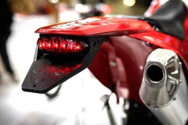尽管杜卡迪未公布 2026 Desmo450 Enduro 的具体规格,但考虑到各制造商常见的惯例,新的 Enduro 版一般都是基于 MX 平台修改而成,而修改的项目主要是增加灯光系统,换装 18 英寸直径的后轮胎、并换上对应 Enduro 常见的宽后胎(Desmo450 MX 采用 110/90 - 19 的后轮胎,而展示的 Desmo450 Enduro 配备了 140/80 - 18 的后轮胎),变速齿轮箱和悬挂的设置也会作出一些对应的修改等。