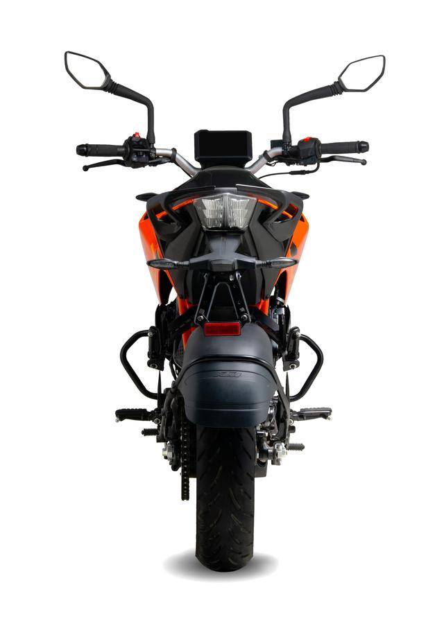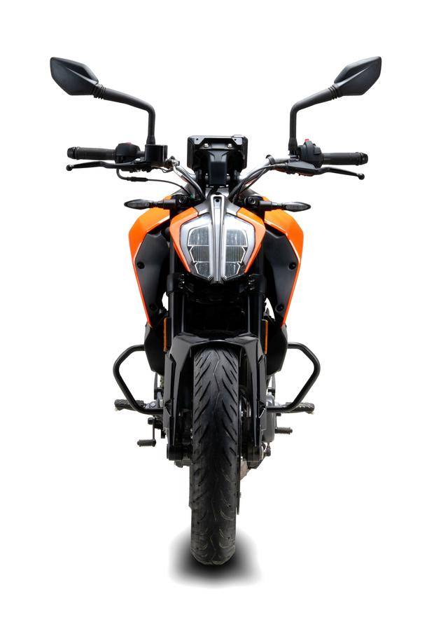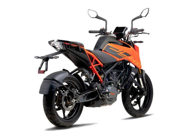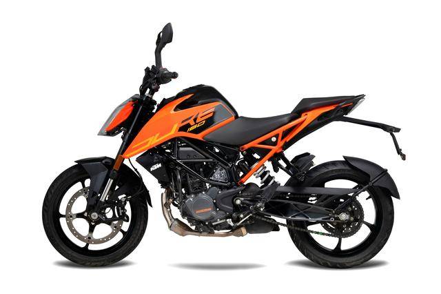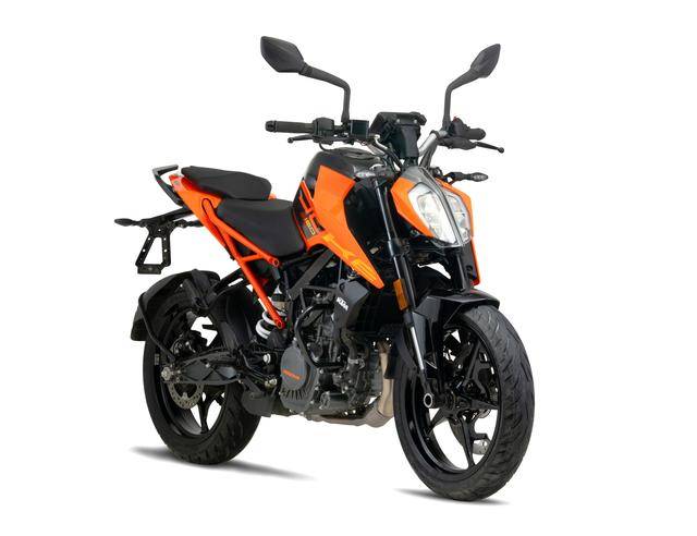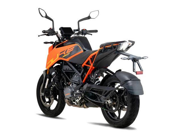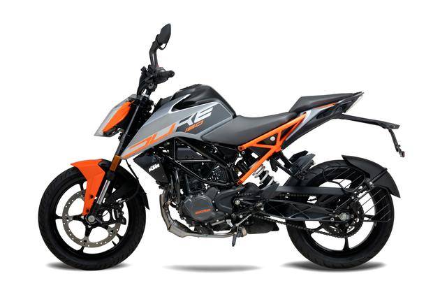 车身方面,采用一副钢管式的车架,与 200 Duke 相近的外观造型;WP 配套的悬挂系统,前面是叉芯口径为 37 mm 的倒立式前叉(200 Duke 的倒立式前叉、叉芯口径为 43 mm),十级预载可调的单筒式后减震;全 LED 的灯光系统,LCD 数字式的仪表板(200 Duke 采用 TFT 全彩色数字式仪表板);标配了 ABS 的前后碟式制动系统,容量为 10.1 公升的油箱,全车整备重量 147 公斤。