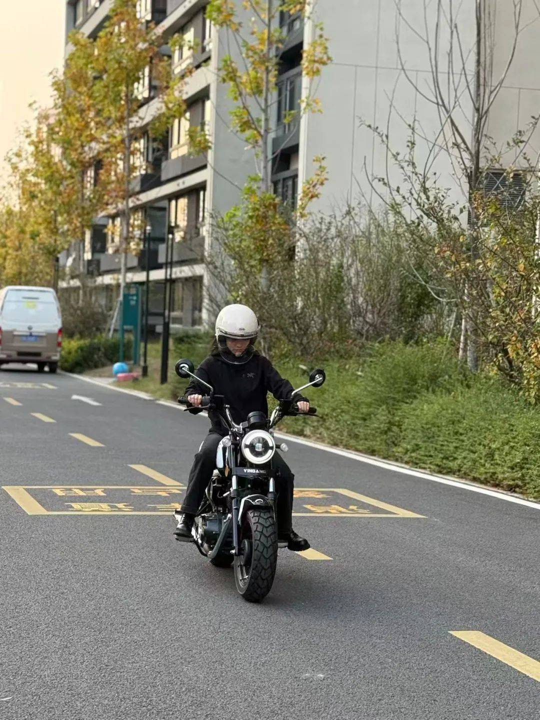 我是来自南京的女骑,上一款车还是爱玛电动,骑时间久了电瓶不给力,感觉电动车充电麻烦,就想买摩托车。因为自己个子比较小,大型一点的摩托车不太友好,平时刷摩托范和小红书看到网友推荐这款车,被迷你的外表吸引,今年3月去实体店看车,第一眼就被配色款式大小吸引当即订车,买完车就去考驾照了。
