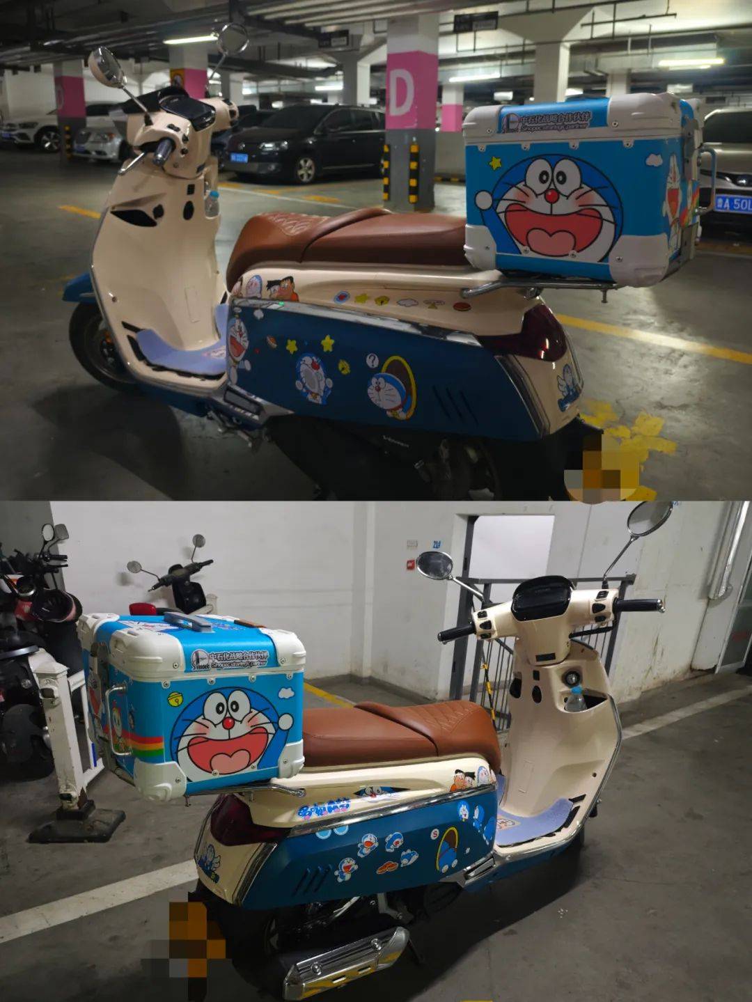 在选购车配色的时候,也是一眼就相中了蓝白配色,当时脑子里就有了哆啦A梦的配色构想,于是在购车后的那个周末,就把自己的车子打造成了童年里的时光机。