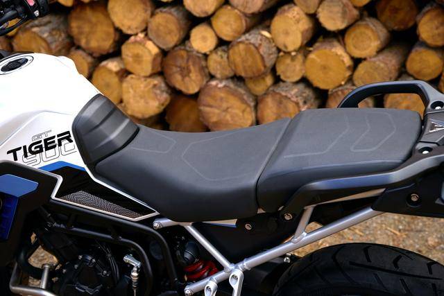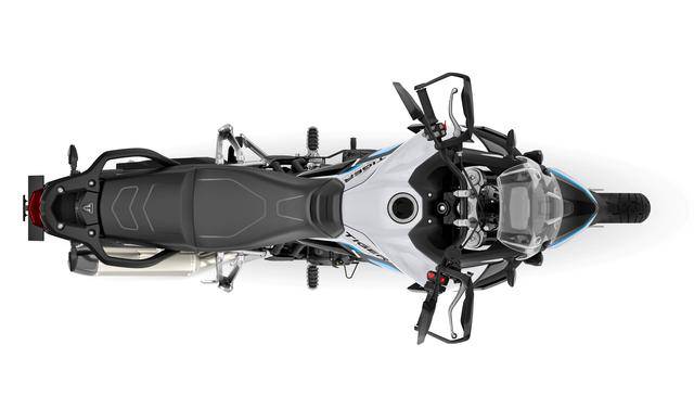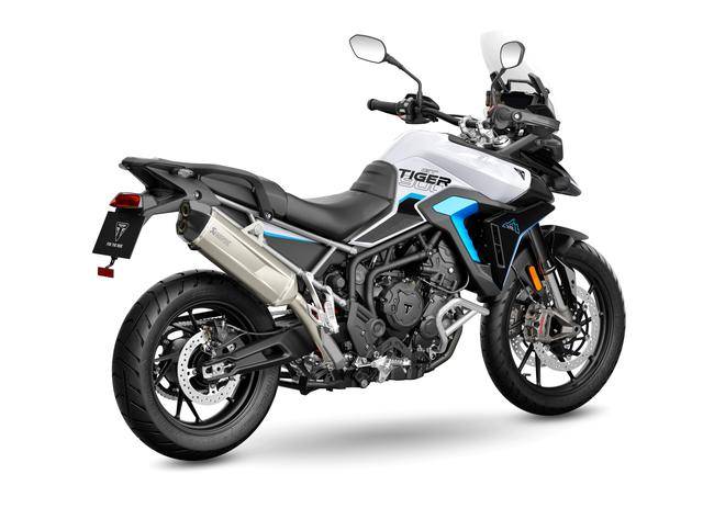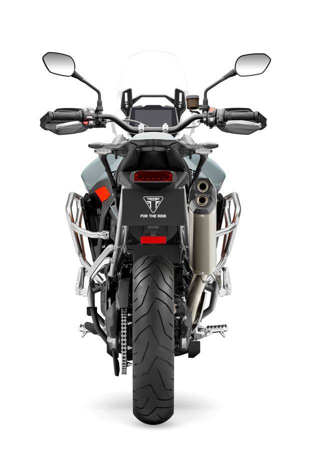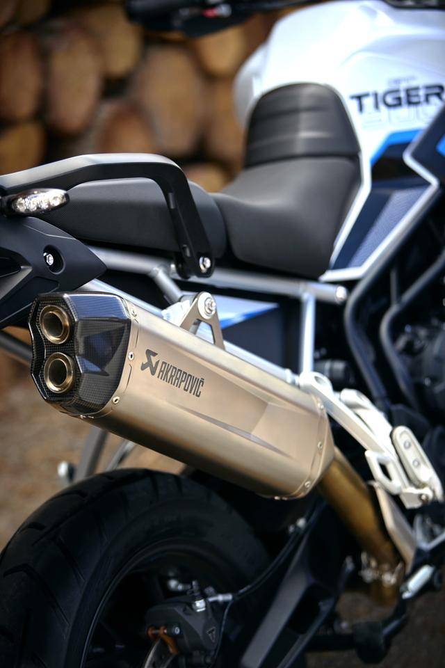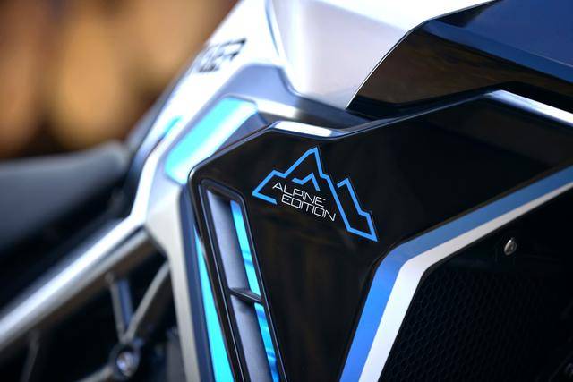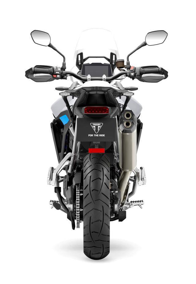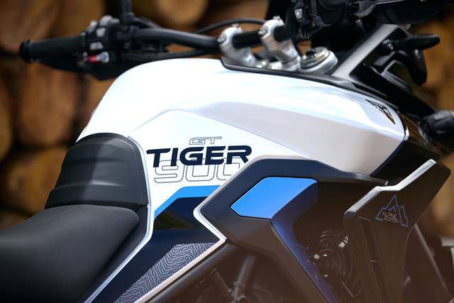 * 与 GT Pro 版相比,新的 Tiger 900 Alpine 阿尔卑斯版标配了 Akrapovic 阿克拉波维奇的排气管,加装了位于车身底部的发动机两侧护架,并采用了一个专属的 Snowdonia White 雪山白 + Sapphire Black 蓝黑色的车身图案。