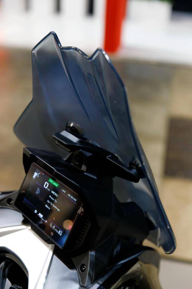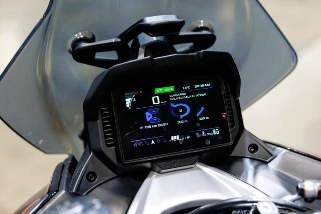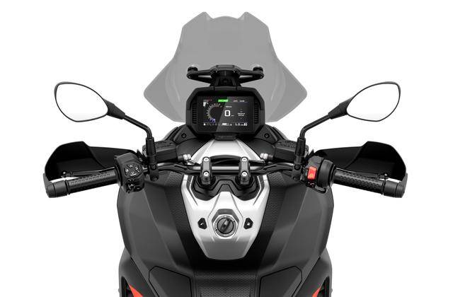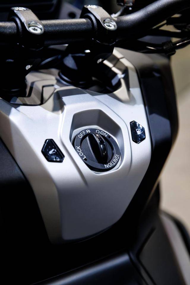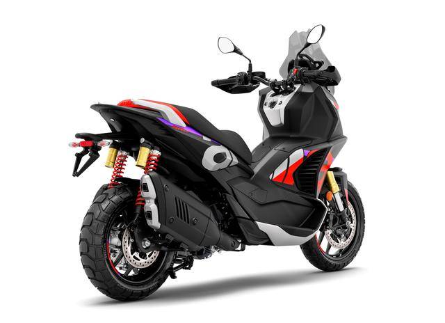 8、高达 195 mm 的离地间隙(注:作为对照,HondaADV350 的离地间隙为 155 mm),且鞍座高度被控制在 820 mm(ADV350 为 795 mm);容量为 12 公升的油箱,前 16、后 14 英寸直径的车轮标配了全地形的轮胎;5 英寸 TFT 全彩色数字式仪表板,标配了无钥匙系统,整备重量 186 公斤。