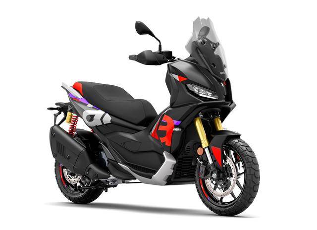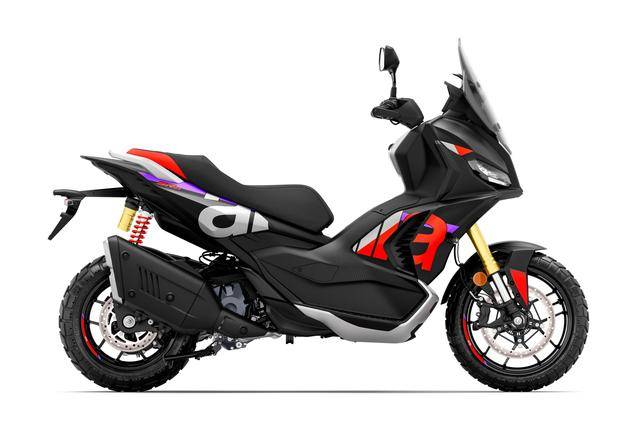 新的 SR GT 400 有四个不同的车身颜色/贴花:黑色,两个不同色调的金属灰色,以及阿普利亚拉力车队之赛车外观风格的 RallyReplica。