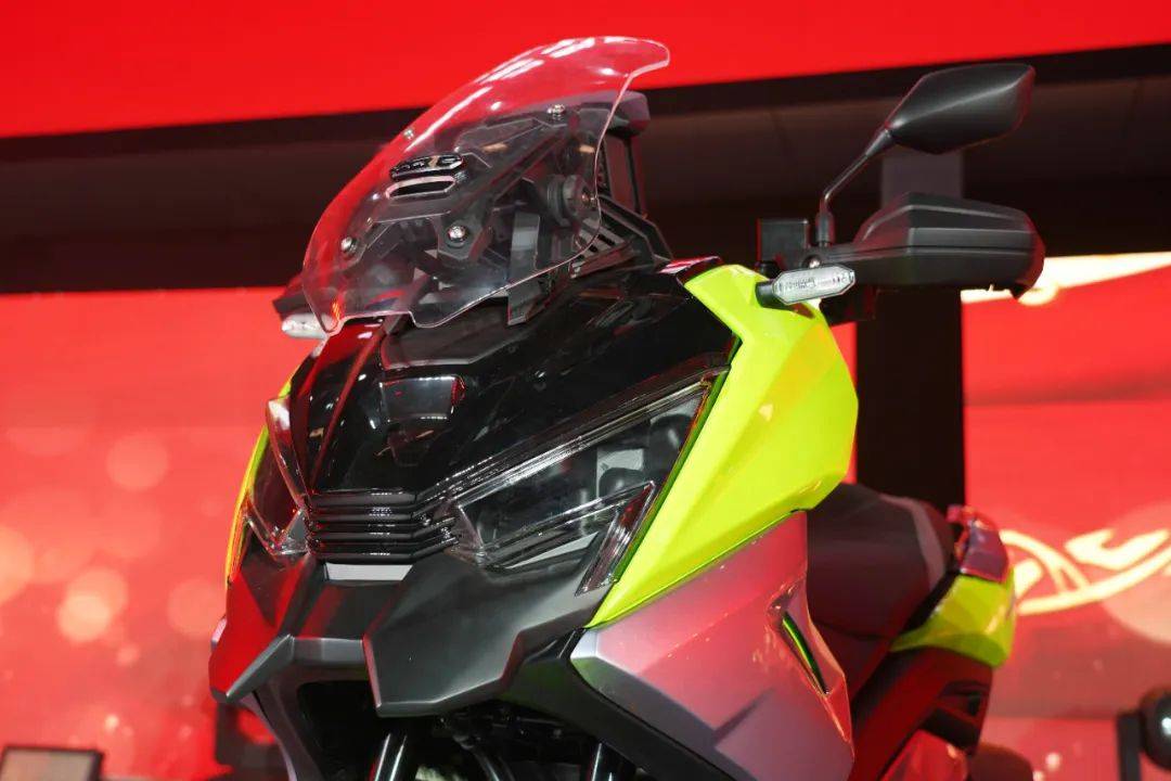 力刻400GS的外观非常运动,以大面积凹凸有致、轮廓分明的线条构成了颇有力量的肌肉感,这是当下比较流行的ADV踏板风格。相较于目前同级别的同类型产品,展车采用了十分亮眼的荧光绿色突显运动感,极具辨识度。