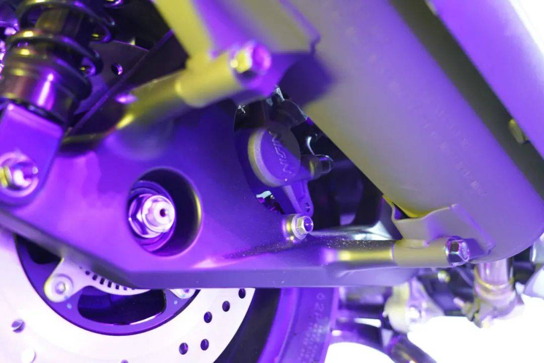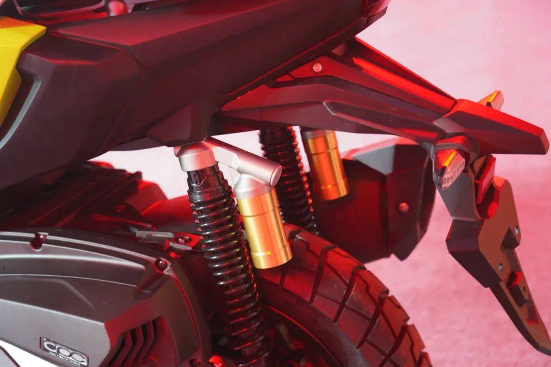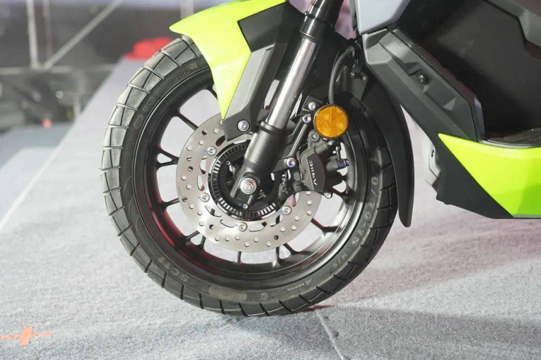 在行走系统上,该车采用倒立式的前减震,带气瓶的双边后减震,虽然前后减震行程没有具体参数,但也是有肉眼可见的长行程设计。前单碟+双活塞、后单碟+单活塞的刹车,搭配双通道ABS+HSTC;前15寸后14寸的龟背胎由CST提供。