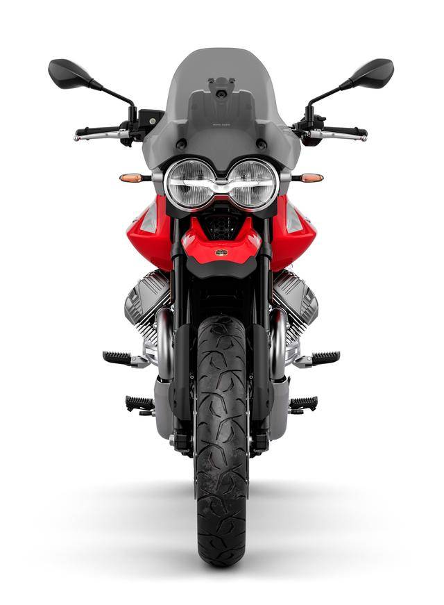 1、属于简易规格的 V85 Strada 采用了前后合金铸造车轮,公路型胎纹的标配轮胎,类似于运动街车风格的前叉护罩,并去掉了另外两个版本所标配的大型尾架;