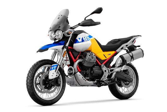 V85 的概念车在 EICMA 2017 米兰车展上首次公开展示,到 Intermot 2018 德国科隆车展上、首个量产型 V85 TT 正式发布,2019 年开始发售,厂方将其定位为现代风格的越野旅行车(Touring Enduro);随后的 2019 年,厂方推出了从 V85 TT 延伸出来的、属于增配规格的 2020 V85 TT Travel 旅行版;到 2023 年的年底,追加发布了简化规格的 2024 V85 Strada,此举进一步丰富了 V85 系列的产品线。