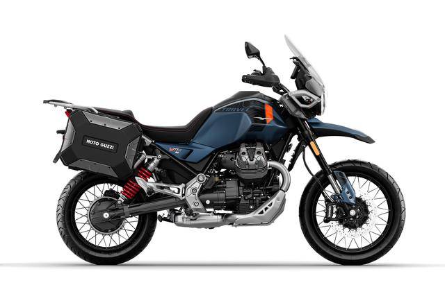 3、兼具探险车与长途旅行车风格的 V85 TT Travel 旅行版,在 V85 TT 的基础上,换装了更高的前风挡,并标配了车体后两侧的边箱、可加热的鞍座和车把两端握手。