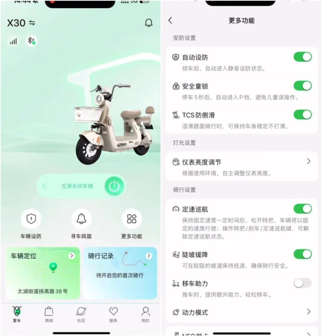 智能互联方面,X30通过手机App实现了远程解锁、钥匙分享、精准定位和异动报警等功能。PCDS骑行管家系统允许用户自定义骑行模式,无论是追求节能的日常通勤,还是需要更强动力的爬坡场景,都能找到合适的设置。