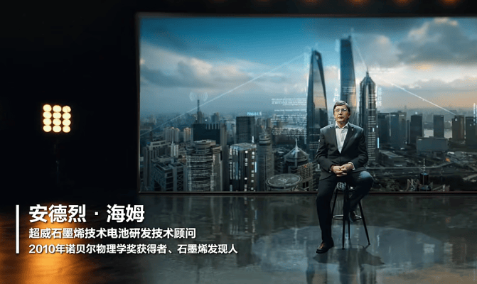 2024 年安德烈・海姆教授更是亲自出镜,与超威联袂打造石墨烯技术电池全球技术宣传大片,这也是中国能源界首次邀请到诺奖得主安德烈・海姆助阵全球技术宣传大片!安德烈·海姆教授以科研工作者的严谨态度,讲述与超威的合作初心,详解石墨烯技术在电池领域的应用原理。这部承载着使命的技术宣传片,深度凝练了超威与海姆教授团队的拼搏心血与超凡智慧,更向全球彰显了超威在石墨烯技术电池领域无可撼动的领军地位。