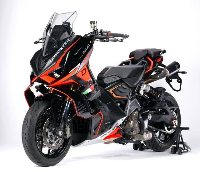 在中量级车型的领域里,Italjet 在去年八月首次推出了 Dragster 700 Twin 工厂限量版(Dragster 700 Twin Factory Limited Edition),这一版本全球限量供应 700 台,在意大利市场的官方定价为 14900 欧元(含当地增值税,下同);后续推出的基本型、意大利市场的官方定价为 13990 欧元。而新的 Dragster 459 Twin 则是厂方在这一细分市场里的第二个车型,暂定于明年三月开始全球发售,意大利市场的官方定价暂拟是 9900 欧元左右。
