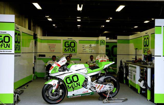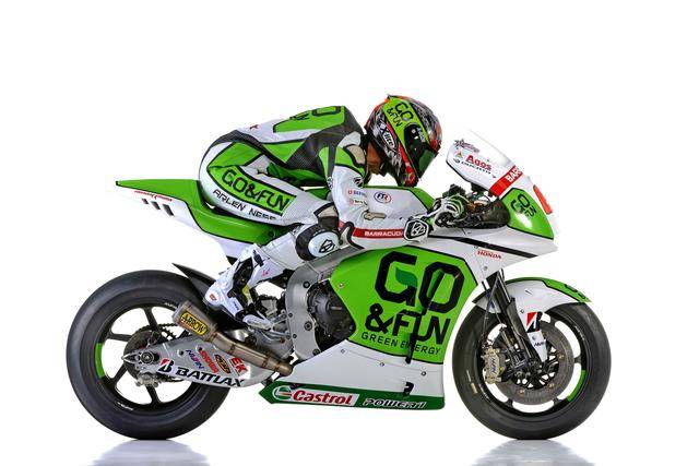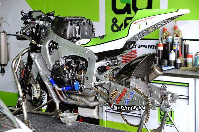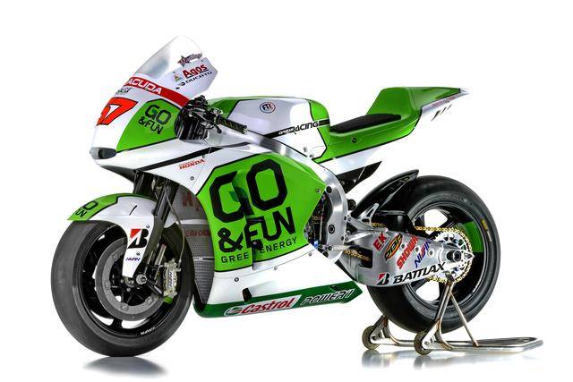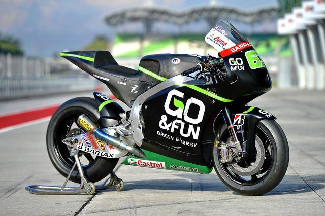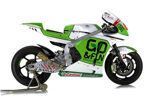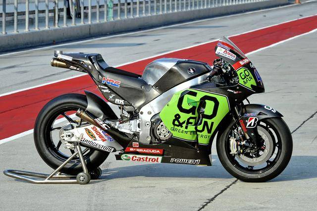 下面的图片,2013 赛季、Gresini 吉斯尼车队,与 RC213V 一起登场的 FTR Honda 赛车。