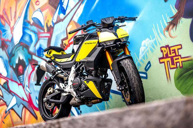 Stealth 125 在去年年底推出,搭载一副来自 Motori Minarelli 生产的、与 Yamaha YZF-R125 和 MT-125 属于同平台的水冷四冲程单气缸、SOHC 四气阀、VVA 可变气阀正时控制的发动机,缸径、行程为 52 mm x 58.7 mm,排气量 124.66 cc,六档的变速齿轮箱、标配了滑动式离合器,最大动力输出为欧洲市场对 125 cc 以下级别限定的 11 kw(约 15 匹)。