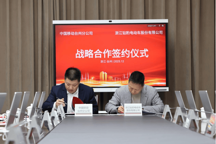 12月16日,浙江钻豹电动车股份有限公司与中国移动台州分公司正式签署战略合作协议。通信科技巨头与电动车豪强企业的强强联合,共同锚定电动两轮车产业的智能化未来,开启了“制造”与“智造”深度融合的新篇章。