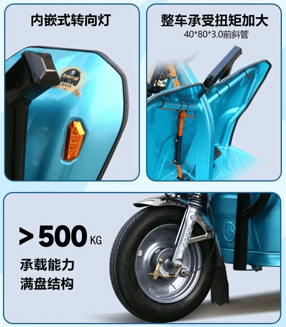 安全与稳定层面拉满保障,强效制动系统应对重载路况制动更可靠,多重防护设计进一步提升整车耐用性与稳定性,专属稳定行驶配置让重载上路更安心,全方位兼顾重载货运的核心刚需与驾乘安全,成为重载电动货三的性能标杆。