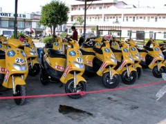 下面的图片,2001 - 2003 年间,宗申 - 比亚乔在广东东莞、深圳、中山等地举办的统一赛和赛道体验活动。