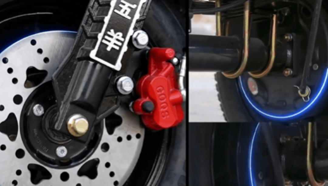 五羊锐锋油刹版搭载三轮大泵油刹系统,手感更轻、反应更快,相比传统鼓刹,这款车的制动系统更灵敏、制动更线性。不论是空车代步行驶还是载重满速运载,制动距离都更可控。