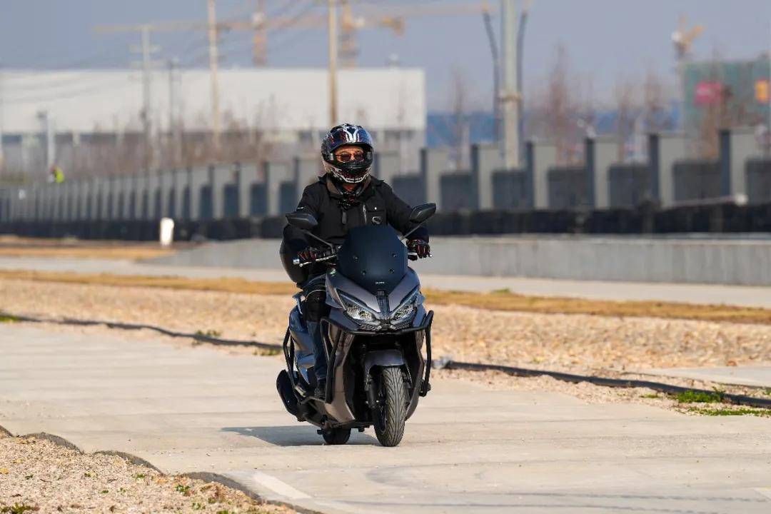 这配置在目前钱江众多150踏板中算顶级的,发动机采用的是两气门动力,带脉冲启停,参数为10.5千瓦/8500转,14牛米/6500转,属于常规水准,比鸿150RS分别小1.7千瓦,小0.8牛米,所以中前段加速体验与鸿150不相上下。