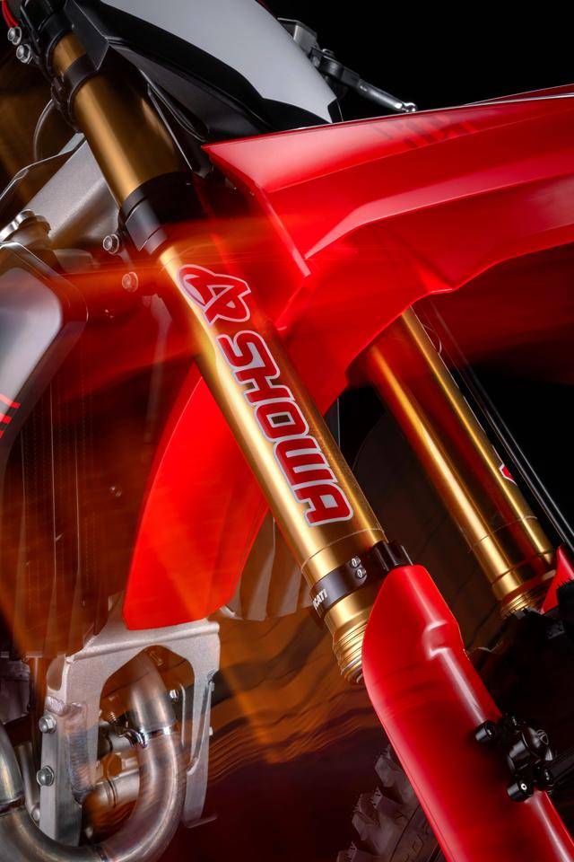 6、其他的升级,包括标配了 Wi - Fi 模块,发动机底部的护罩,前刹车碟护罩,换装了带 O 型橡胶圈的 RK MXU Gold 金色传动链条,与工厂车队相同风格的车身图案/贴花,全车不含燃料的整备重量为 104 公斤(标准款为 104.8 公斤)。